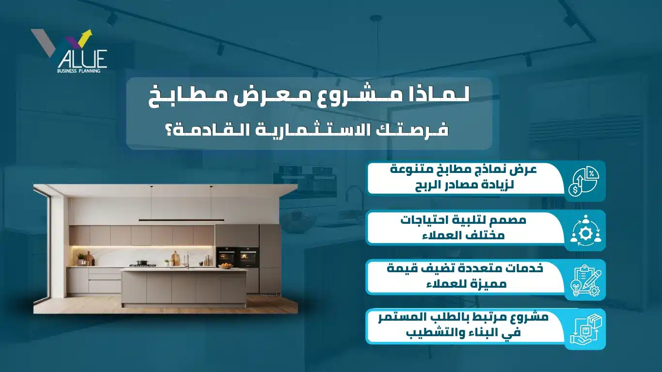 الاستعانة بمكتب دراسة جدوى متخصص تمثل خطوة ذكية لكل من يسعى إلى إطلاق مشروع معرض مطابخ قائم على أسس علمية واضحة، وليس على الاجتهادات الشخصية فقط. في هذا الإطار، يوفر مكتب فاليو لدراسات الجدوى تحليلات مبنية على بيانات سوقية حديثة وخبرة عملية في قطاع المشروعات التجارية، بما يساعد المستثمر على رؤية شاملة للفرصة الاستثمارية قبل اتخاذ القرار.