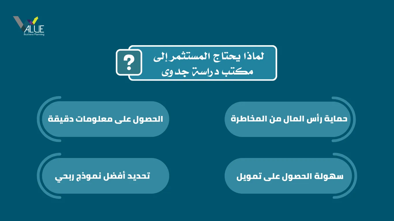 • دراسة قابلة للتطبيق ليست مجرد أرقام؛ بل نحول فكرتك من مجرد فكرة على الورق إلى واقع.